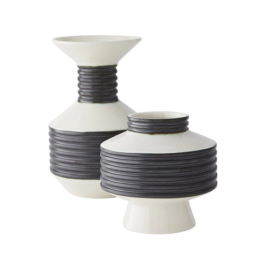Set of two Ivory Crackle vases with Gunmetal accent.