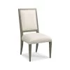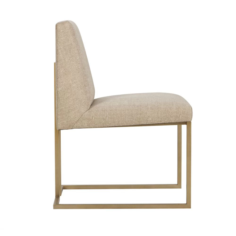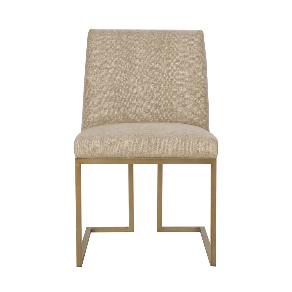 Satin Brass finished metal dining side chair with Marley Hemp fabric seat and back.