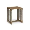 Outdoor teak frame ottoman with all weather wicker fiber on aluminum frame and Sunbrella covered cushions. Stocked in Granite or special order in Cool Grey woven finish.