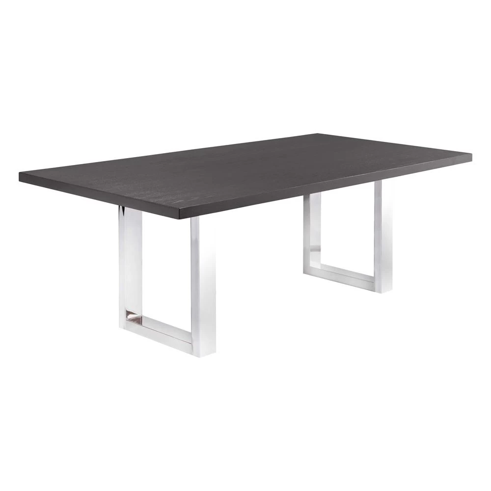 Rectangular double pedestal dining table with 1.75″ thick top and Polished Chrome channel legs. Available in sizes from 42″ to 54″ wide and 72″ to 120″ in length.