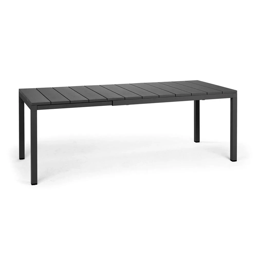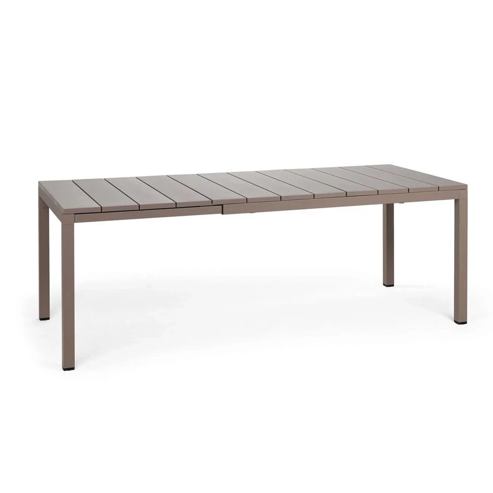 Outdoor extendible dining table (includes 1 x 28″ leaf) with aluminum legs and a resin/fibreglass top. Available in White, Charcoal or Taupe colours. Also available in a larger size 83-111w.
