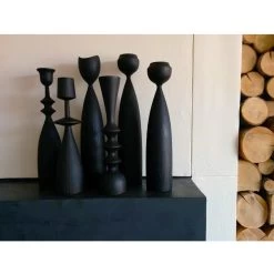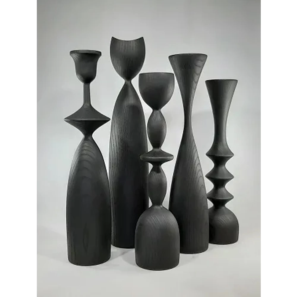 Ash turned candleholder in Black finish. Also available in White Wash finish.