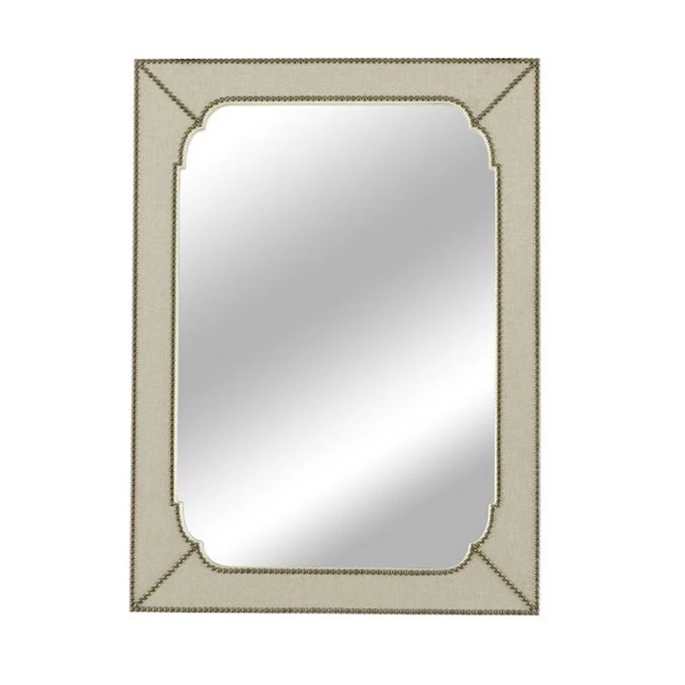 Rectangular linen and nail head framed clear mirror. (Discontinued).