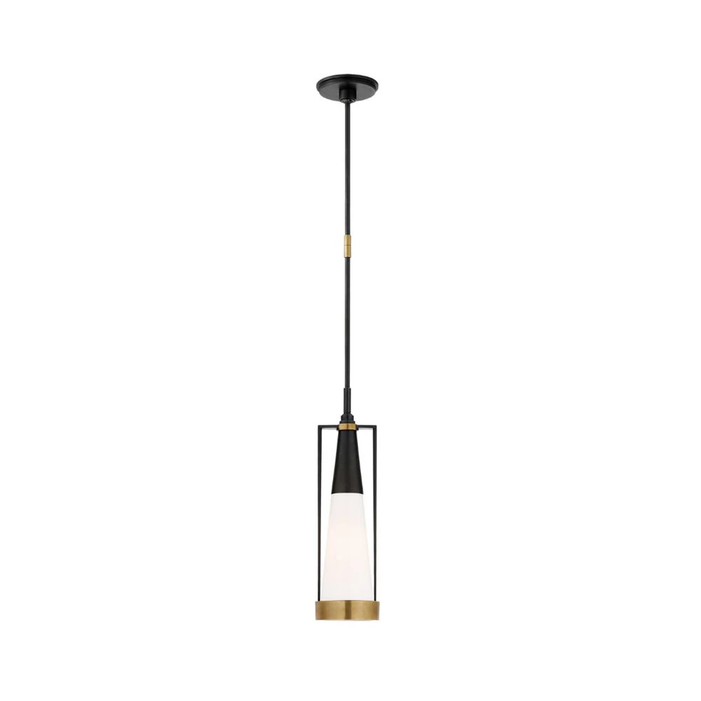 Thomas O’Brien design pendant light in Bronze and Hand-Rubbed Antique Brass with a White Glass shade. (Discontinued)