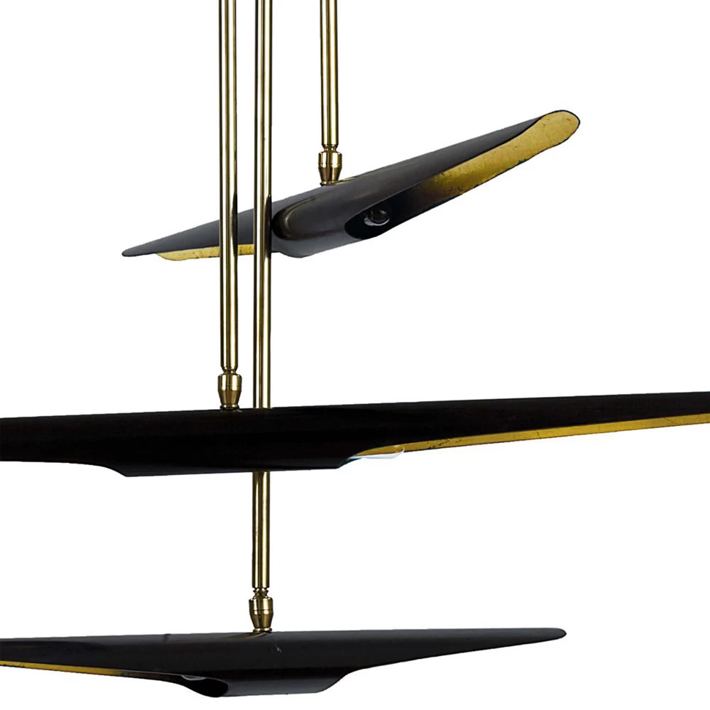 Blackened Steel with gold accents 6-light chandelier. Max height 44″.