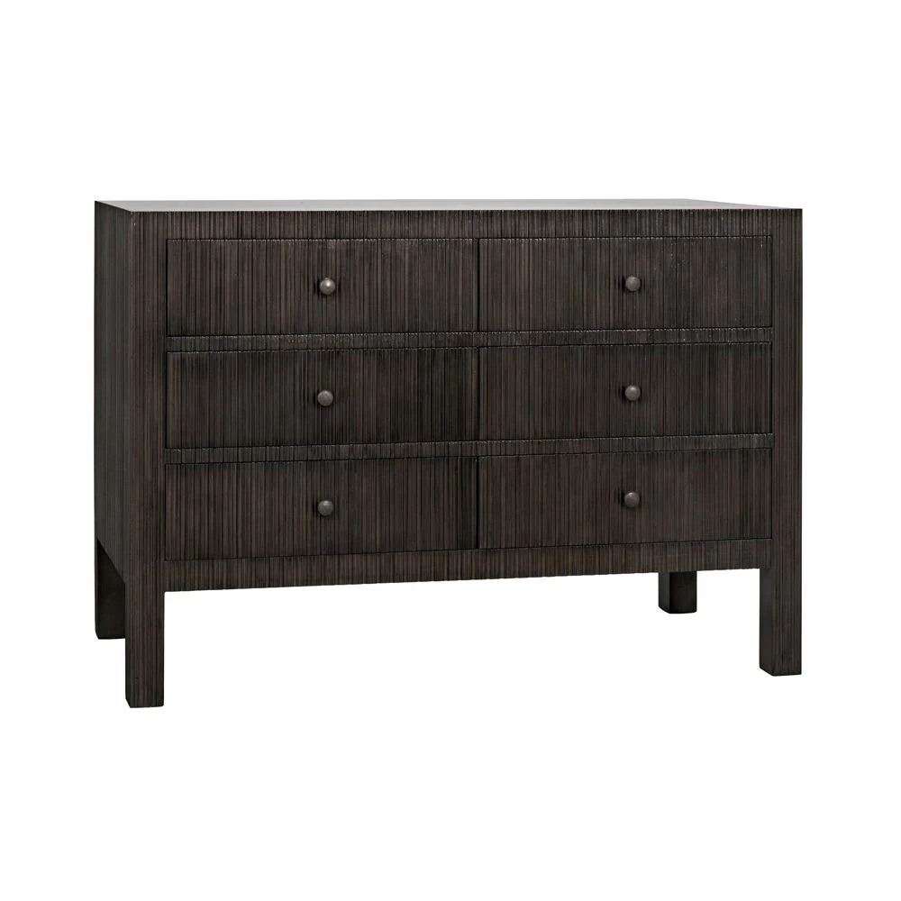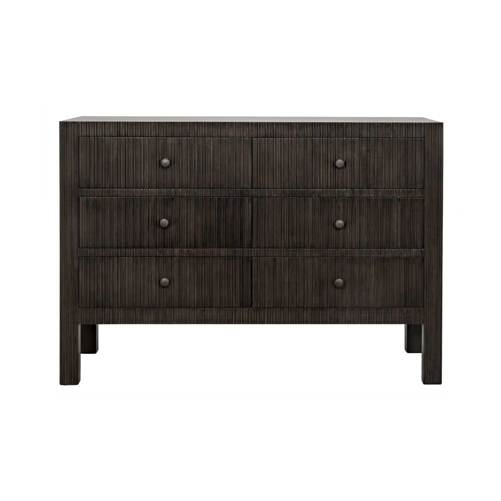 6 drawer dresser with ridged profile all done in Mahogany with Brass pulls.