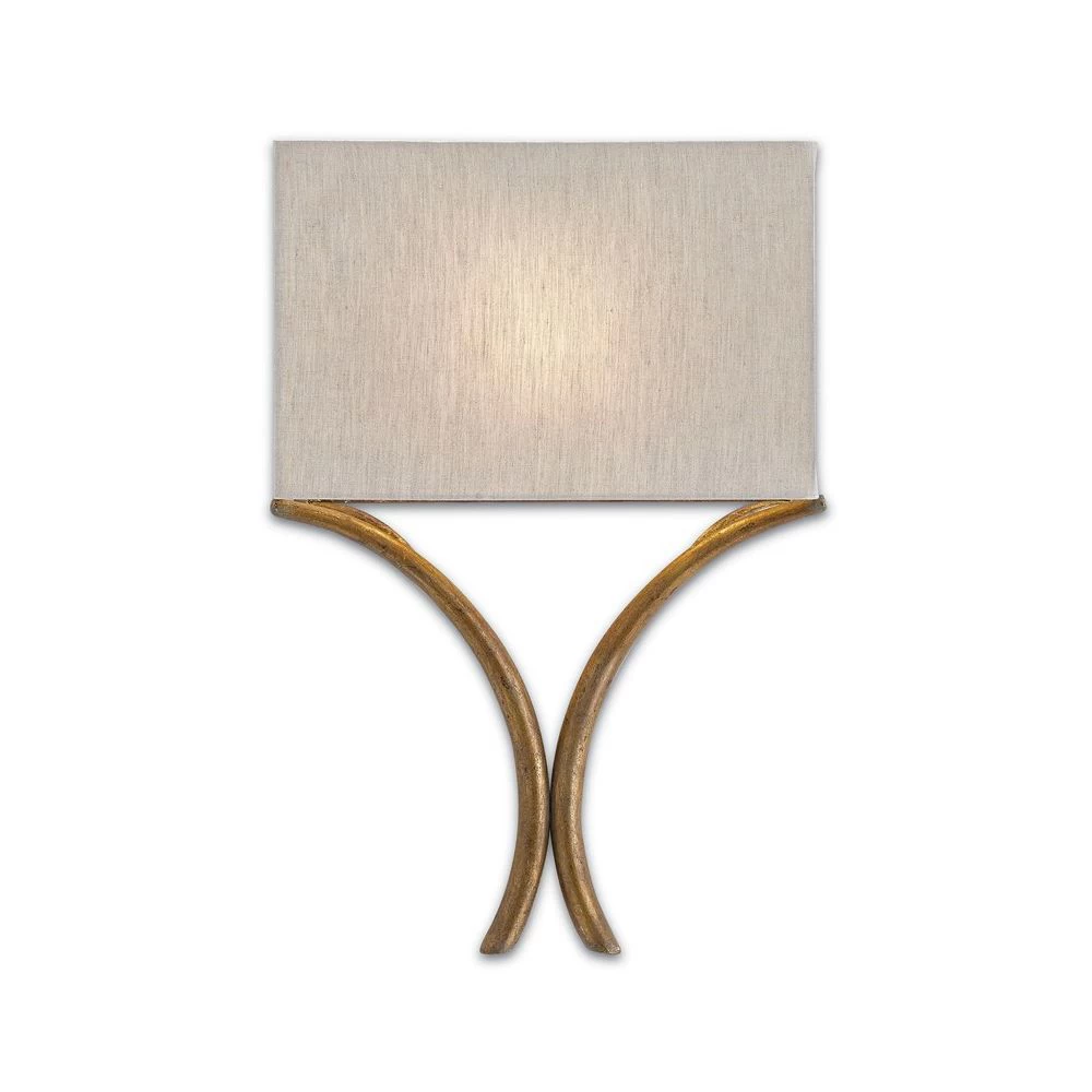 French Gold leaf finished wrought iron wall sconce with Natural Linen shade.