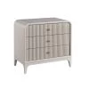 Three drawer custom nightstand in an walnut wood with tapered legs. Finished in Cocoa Brown with 6″ Satin Brass Hex pull hardware (MHP-6-SB).