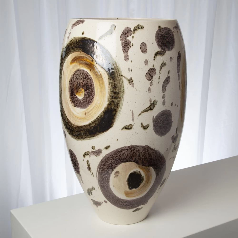 Bronze and Beige glazed Portuguese Clay ceramic vase.