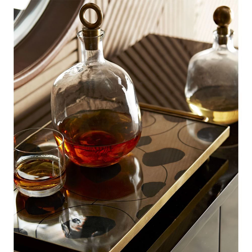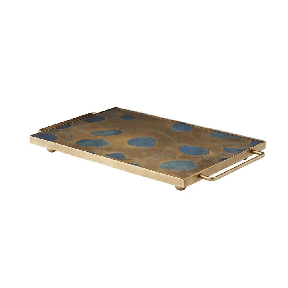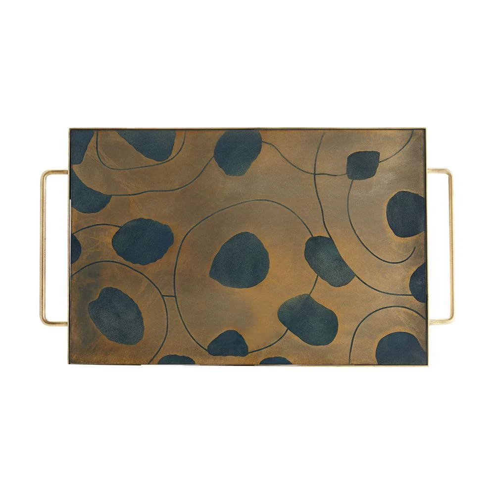 Glass and metal rectangular tray in Antique Brass and Black and Mercury flora pattern in Antique Glass inset.