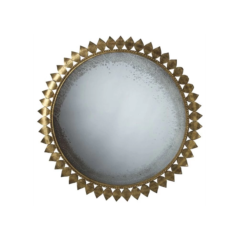 Round Gold Leaf finished metal mirror with Antique mirror glass. (Discontinued).