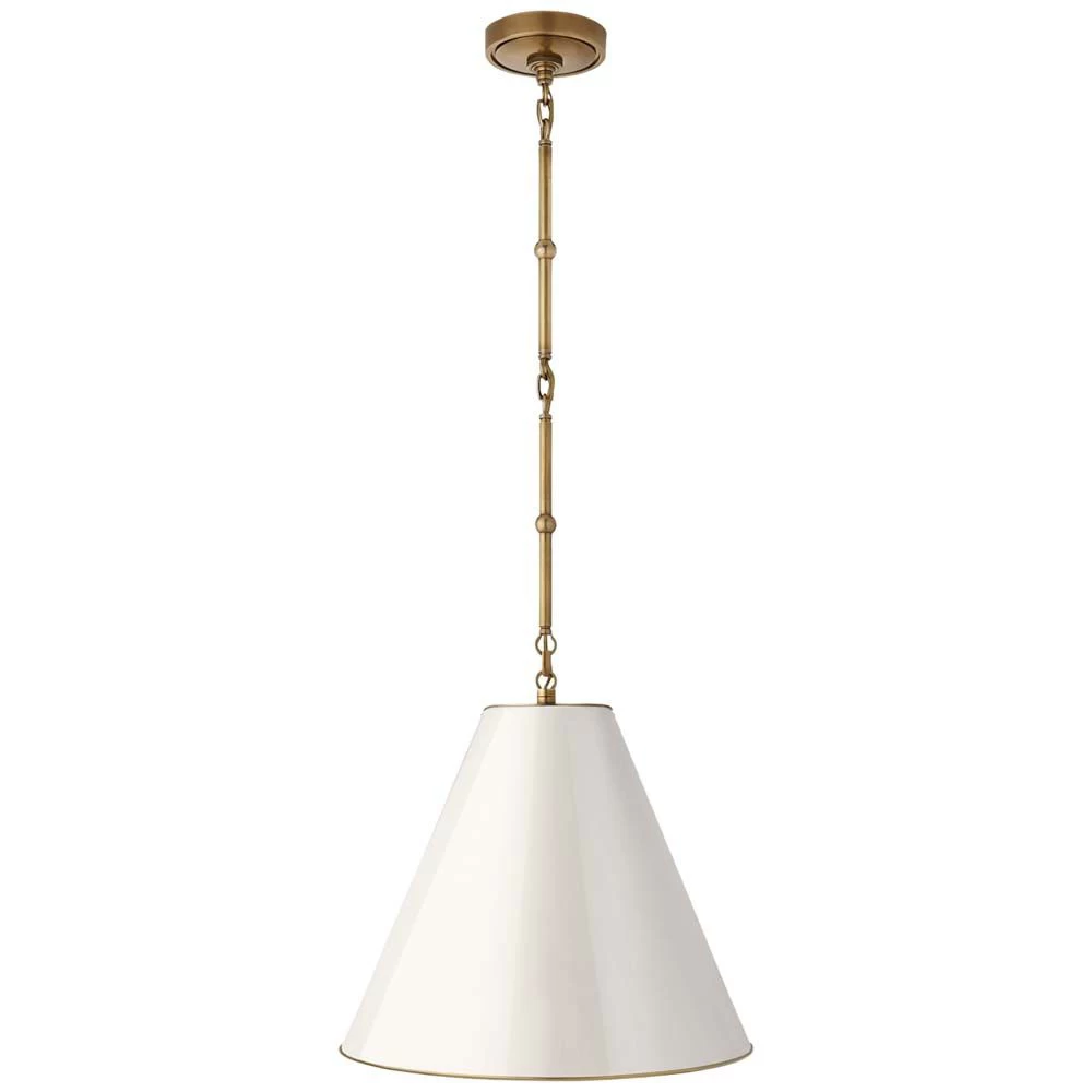 Thomas O’Brien hanging shade shown in Hand Rubbed Brass finish with Antique White Shade.