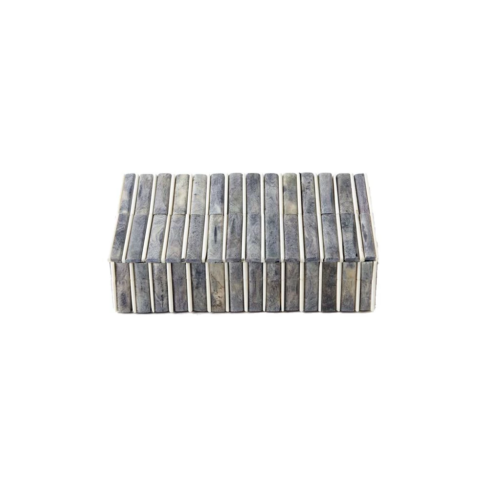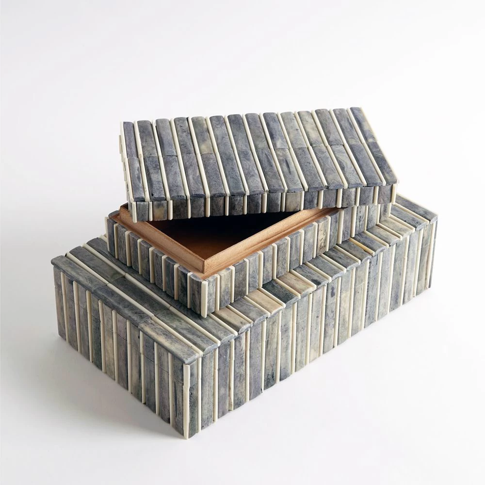 Grey and Ivory Bone box with wood interior lining.