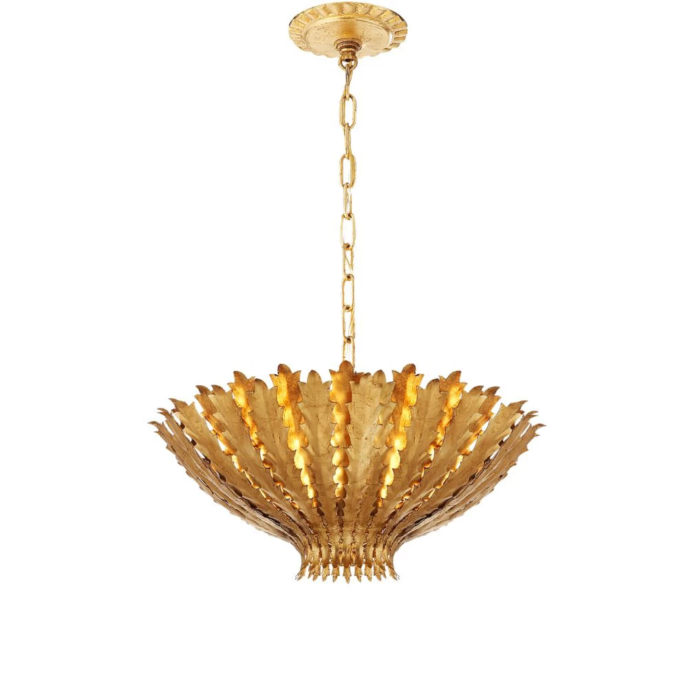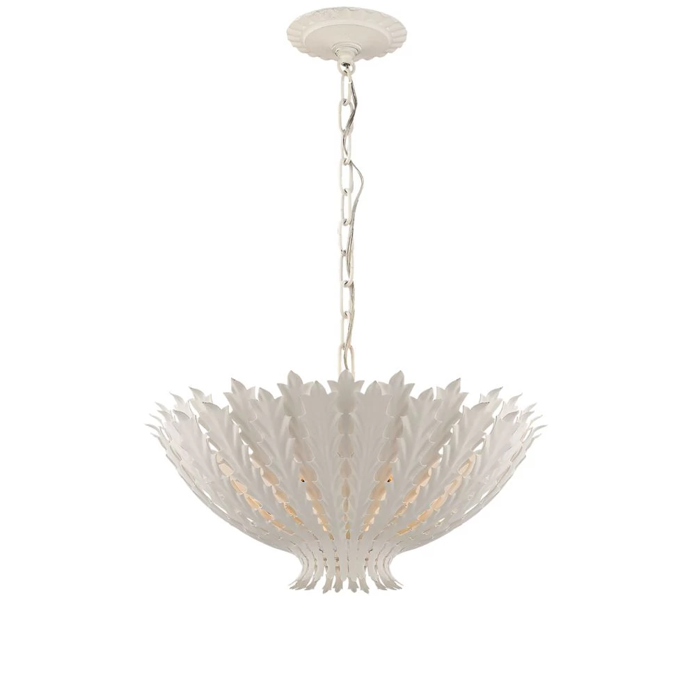 AERIN design metal pendant. Available in Plaster White, Gild, or Burnished Silver finishes. Comes with 6′ chain.