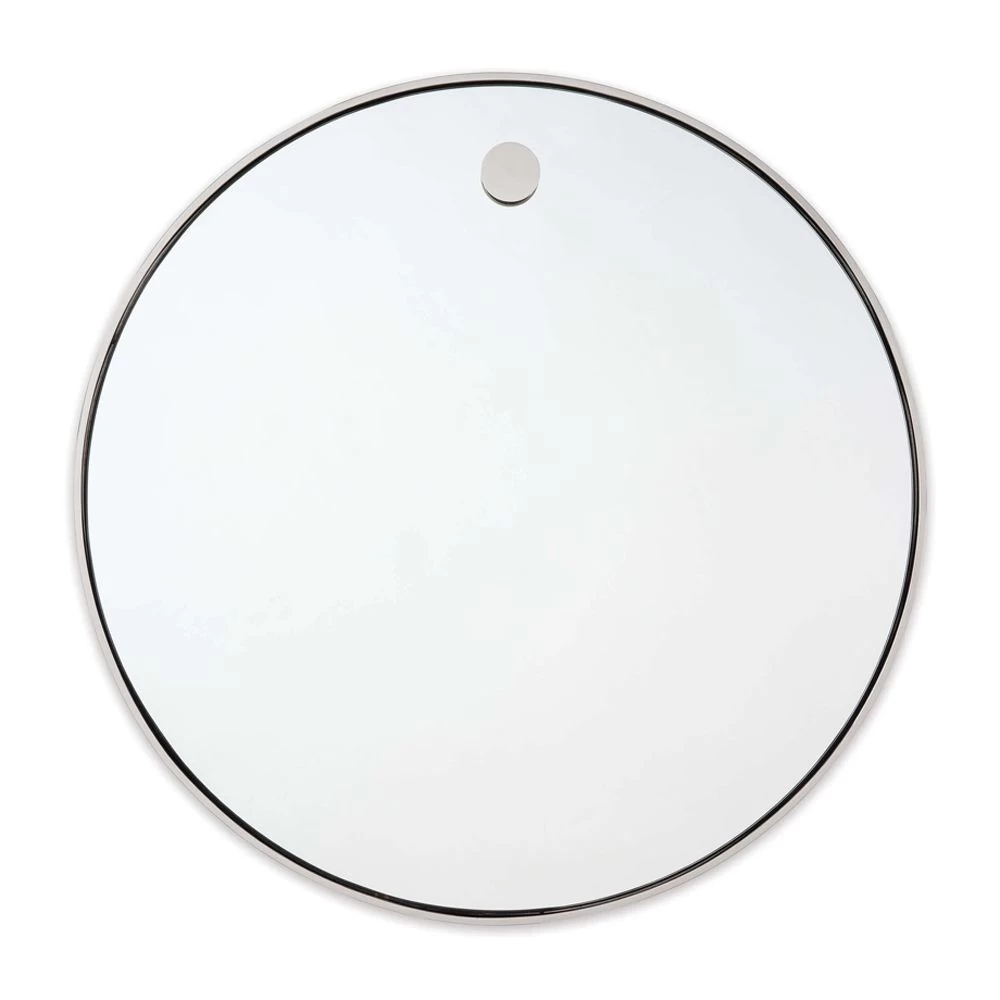 Polished Nickel finished metal framed round mirror. Also available in Brass and Steel finishes.