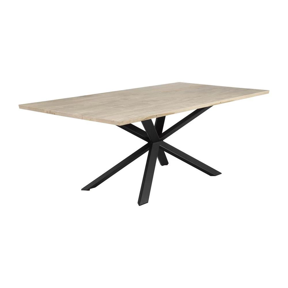 Rectangular single pedestal dining table with 1.75″ thick solid top in White Maple with a White Wash stain finish and wrought iron metal base in Black matte finish. Available in sizes from 42″ to 54″ wide and 72″ to 120″ in length. Also can add end extensions.