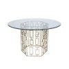Round (or oval) shaped ash dining table with 4-legged pedestal base and casters. Available in a range of wood finishes and option for Broze, Antique Brass or Antiqu Silver casters.