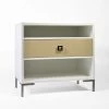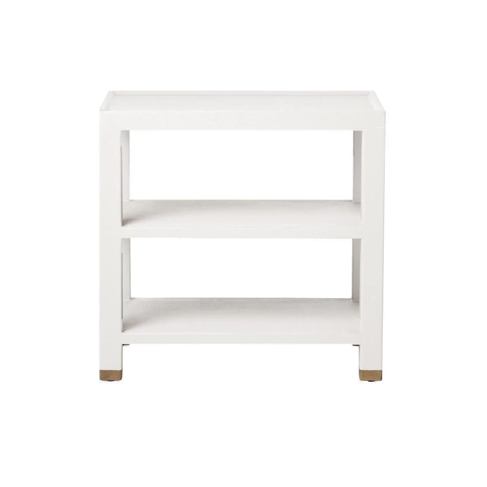 Designer White Faux Linen covered side table with mulitple shelves and brass ferrules. Avaliable in a range of colours and sizes.