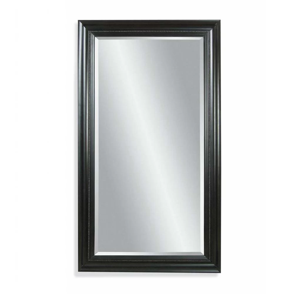 Ebony finished wood leaner mirror with beveled mirror edge.