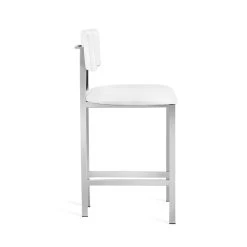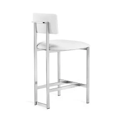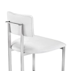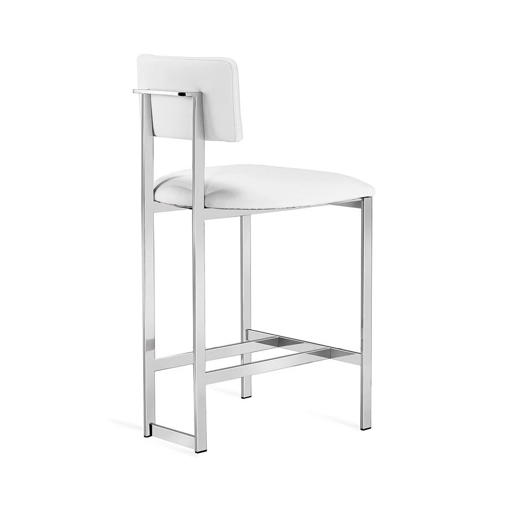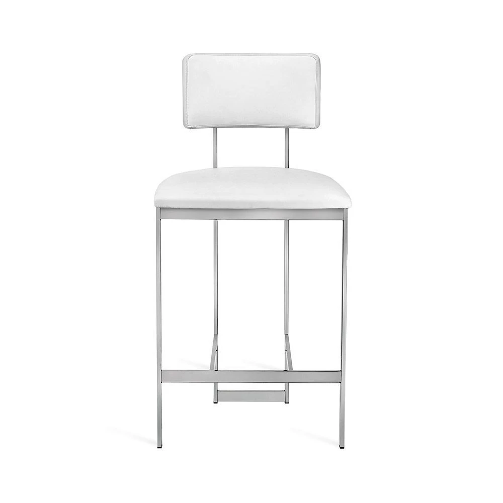 Stainless steel counter stool in Polished Nickel finish with Alpine White faux leather cover.
