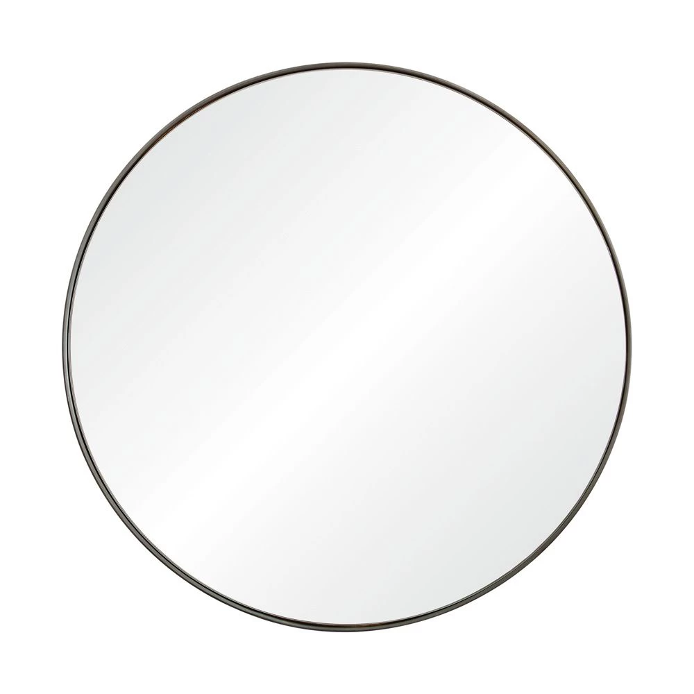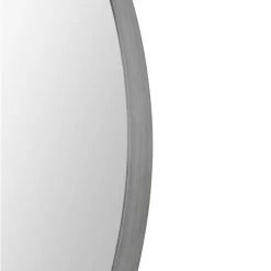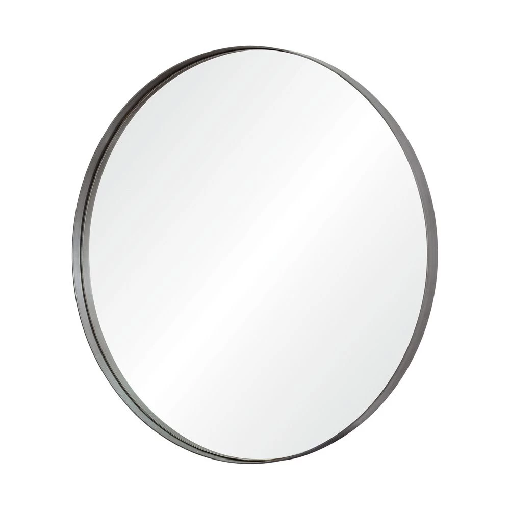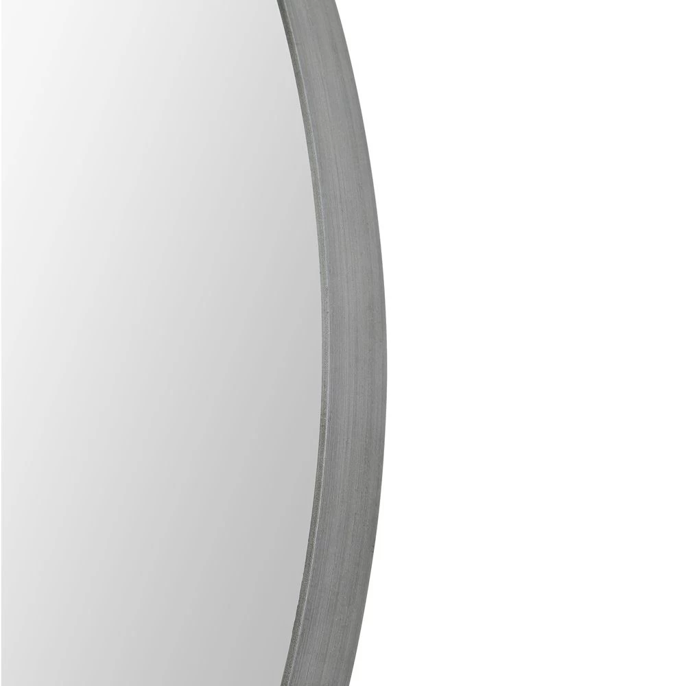 Round Antique Brushed Silver finished metal frame with a clear mirror.