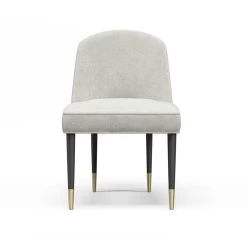 Curved back dining chair chair with tight seat and back cushions and Satin Brass sabots on the legs. Priced with 2.0 yds of Grade A fabric.