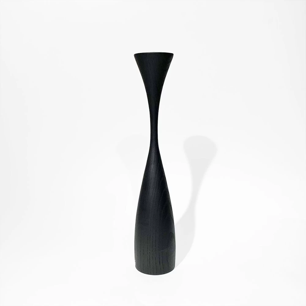 Ash turned candleholder in Black finish. Also available in White Wash finish.