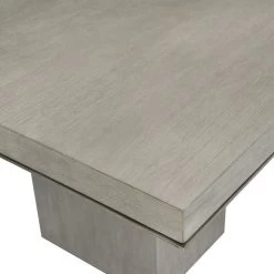 Rectangular Double Pedestal extension dining table with metal bead trim around apron and one 20″ table leaf. Available in Cerused Greige or Cerused Charcoal finishes.