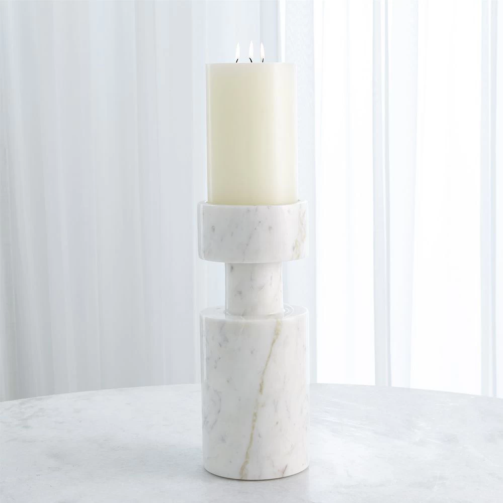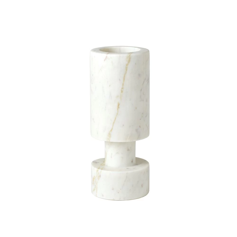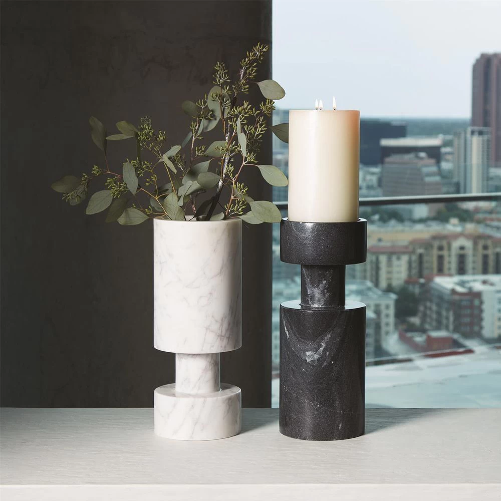 White marble pillar candleholder or votive. Available in White or Black Marble.