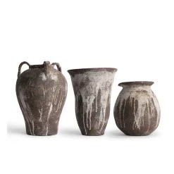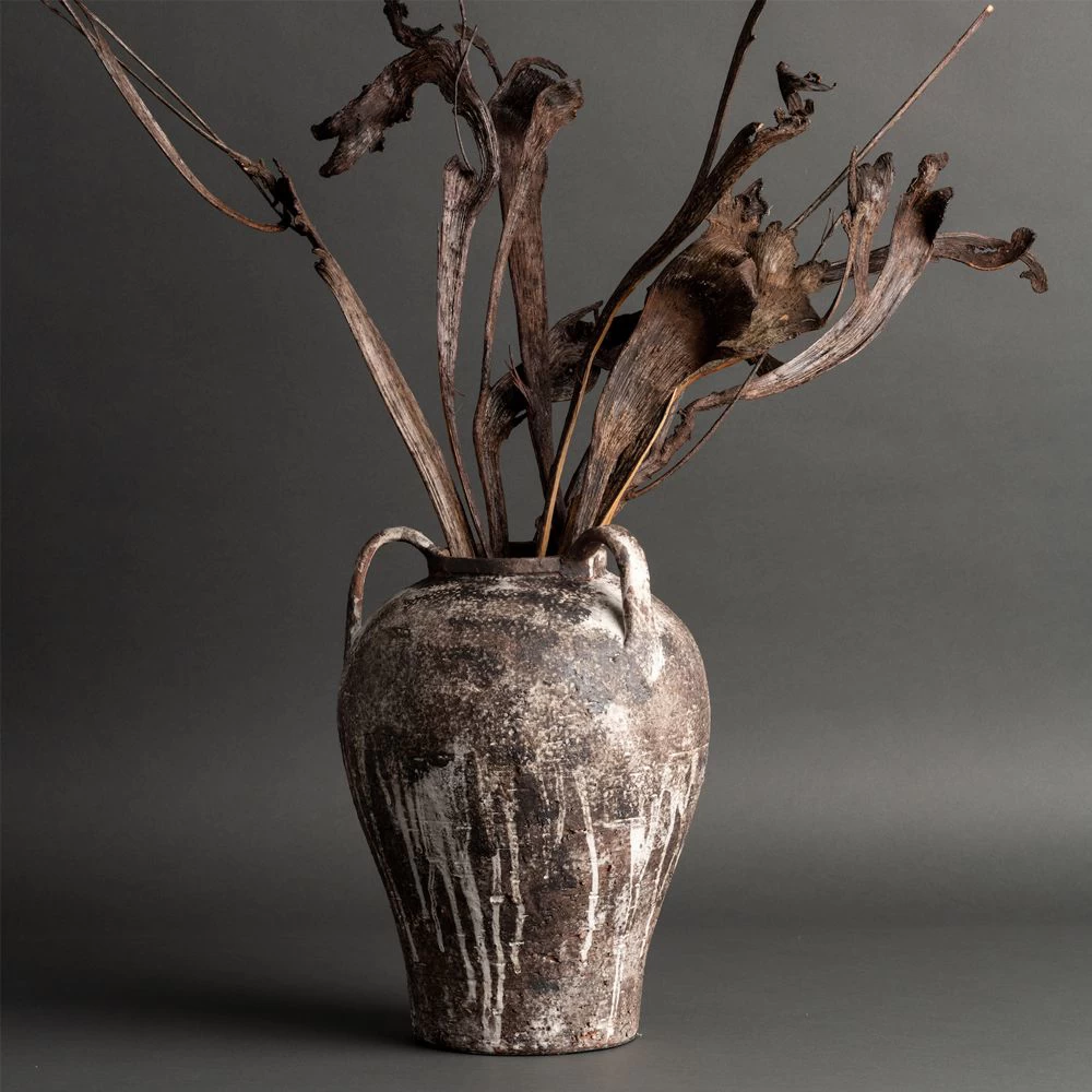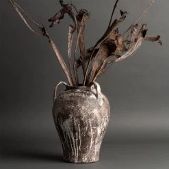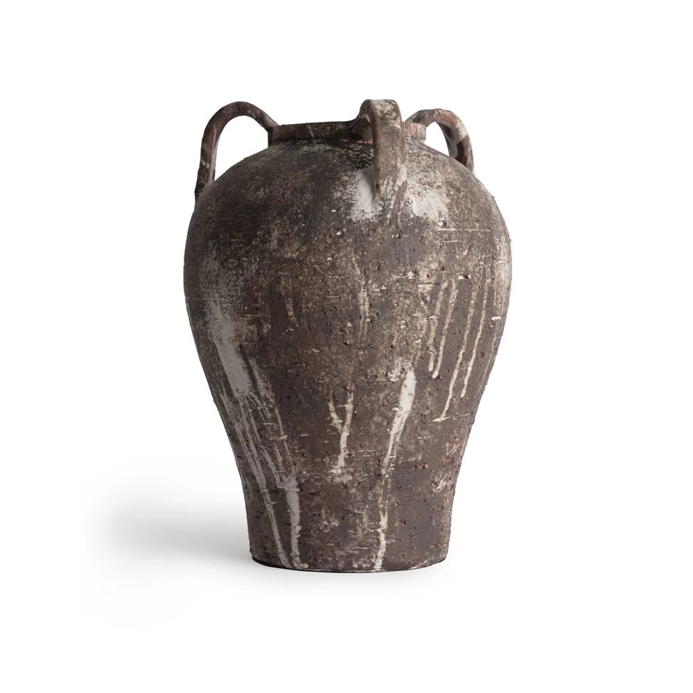 Dark Brown and Ivory tall hand-made ceramic vase with stoneware handles.