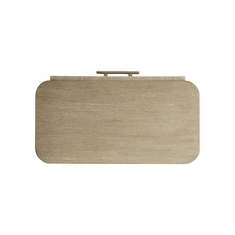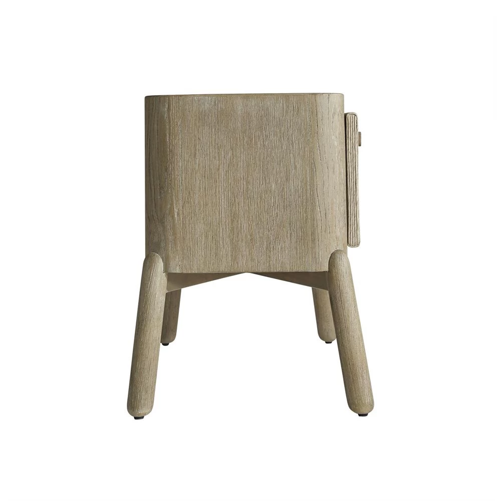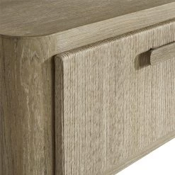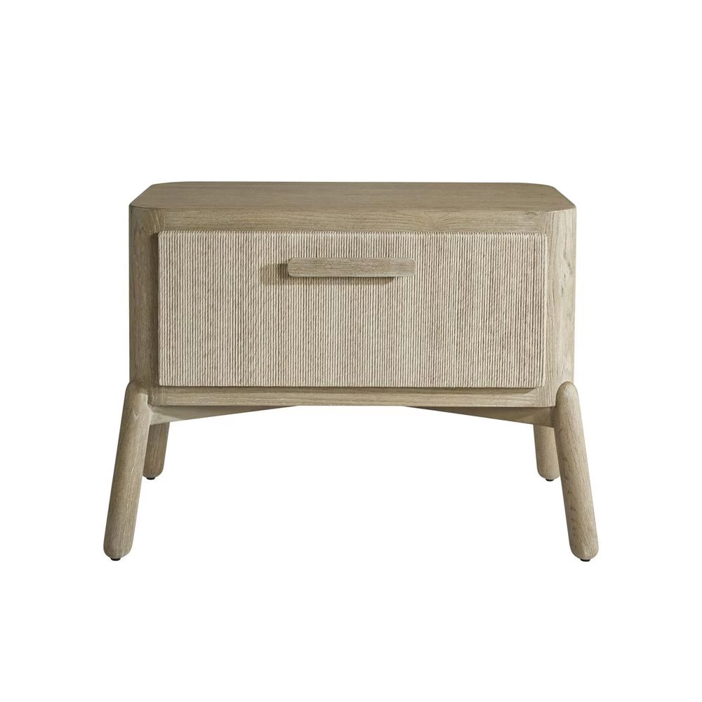 Single drawer nightstand with Twisted Rope drawer fronts and finished in Sand Bar on White Oak. Two USB chargers are located on the back of the cabinet.