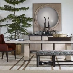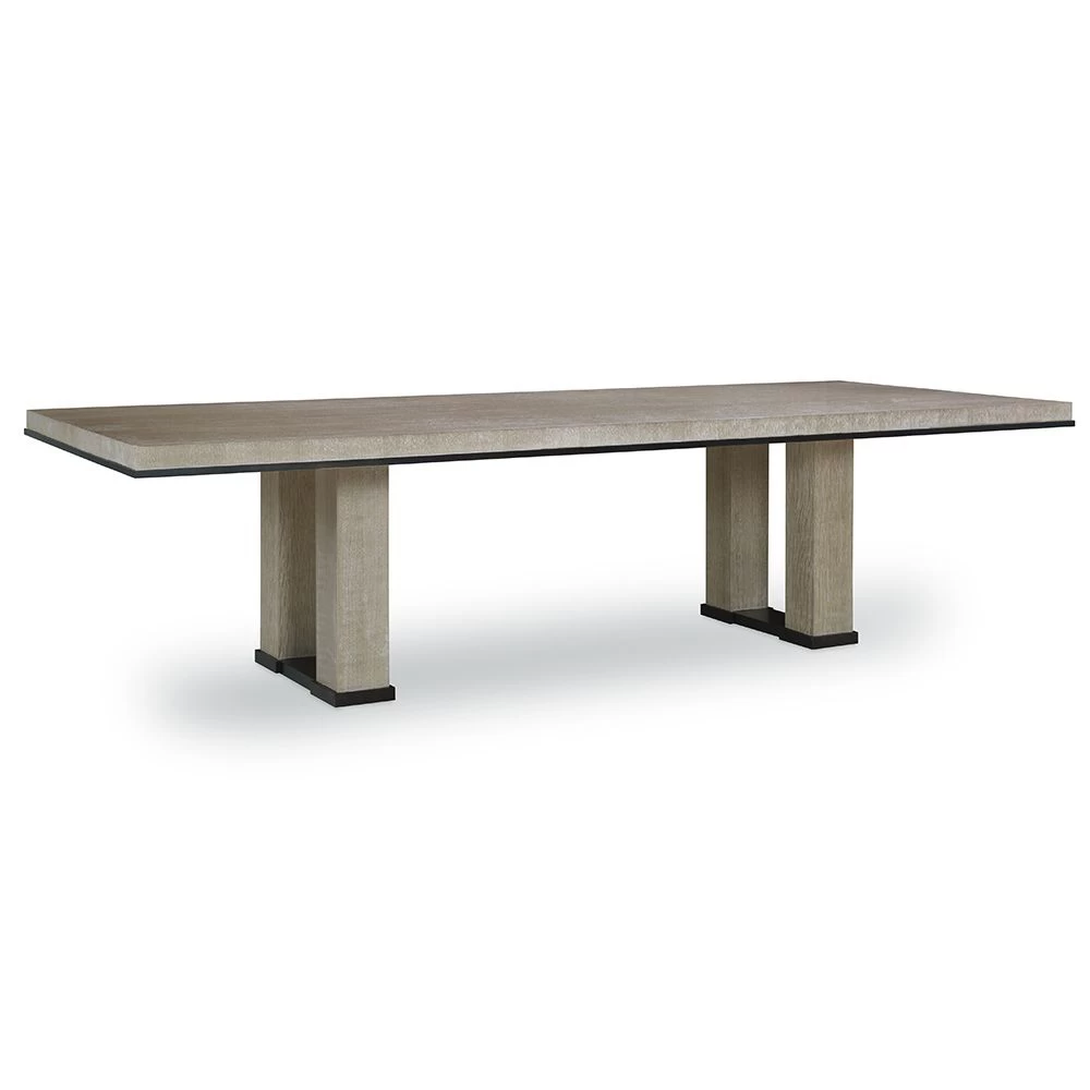 Rectangular walnut and oak dining table shown with combination finish on table and top molding/post blocks. Available in a range of finishes.