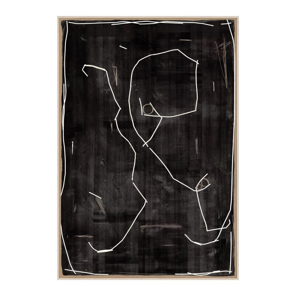 These deeply textured images feature meandering lines and are accented with energetic marks. Available with a background of cream or deep brown. Finished in a natural wood floater frame.