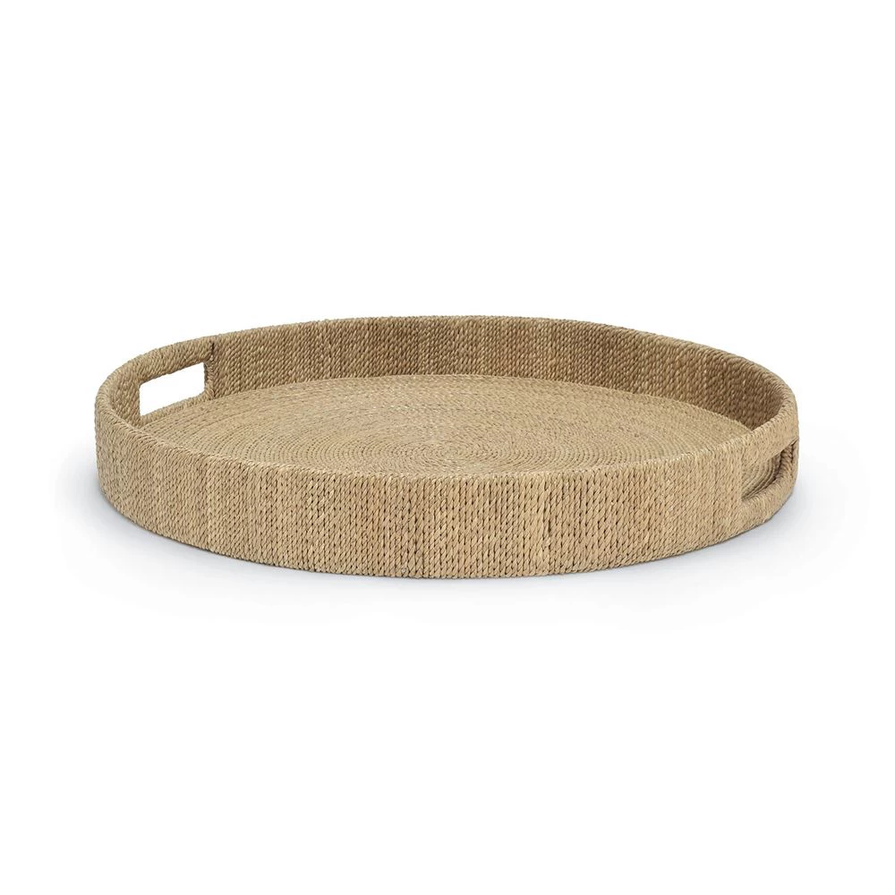 Jeffrey Alan Marks Collection. Metal frame wrapped with natural seagrass rope accented with cut out handles. Available in smaller size and in White Sand finish.