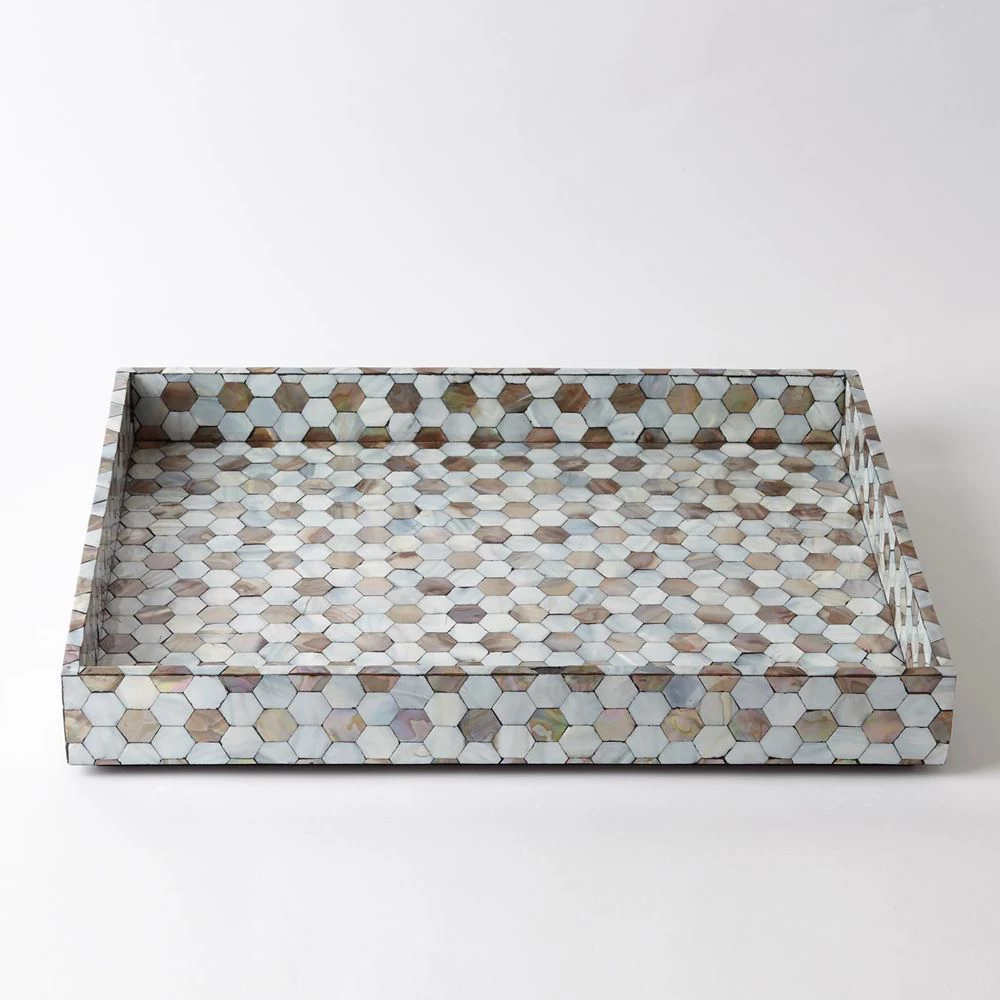 Small rectangular Mother of Pearl tray. Available in two sizes.