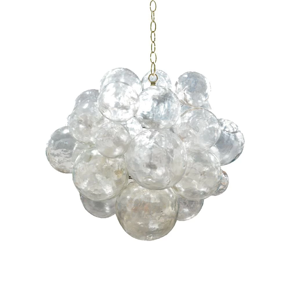 Clear cast resin bubbles form this cluster chandelier. Available with gold or silver hardware. Includes canopy and 3′ chain.