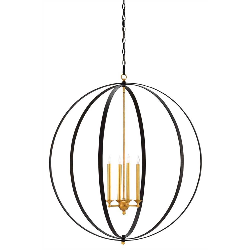 Orb shaped 4-light metal chandelier finished in Black and Chinois Antique Gold Leaf.