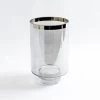 Smoke glass cylinder tealight holder with matte black base, 5″.