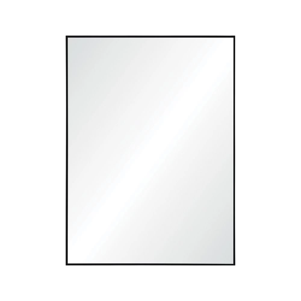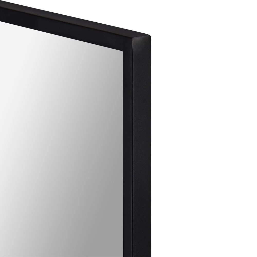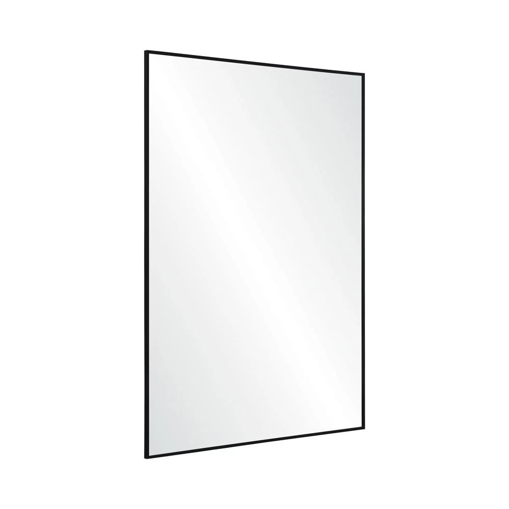 Matte Black finished rectangular metal framed mirror with clear mirror.