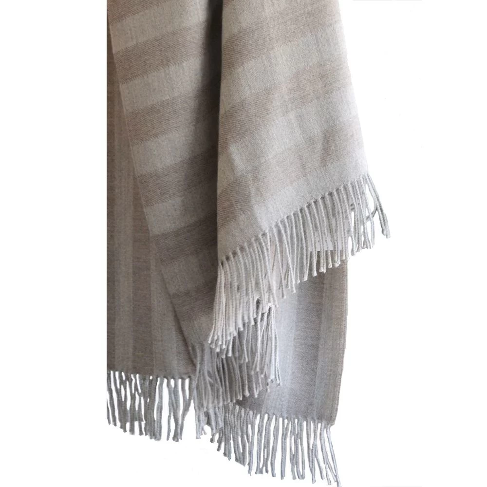 100% Baby Alpaca throw with vertical and horizontal stripes in solid Taupe and Natural colours.