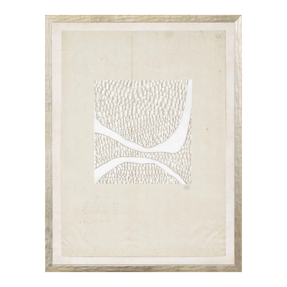 A series of 24 white-on-neutral abstract drawings in a warm silver mottled frame.