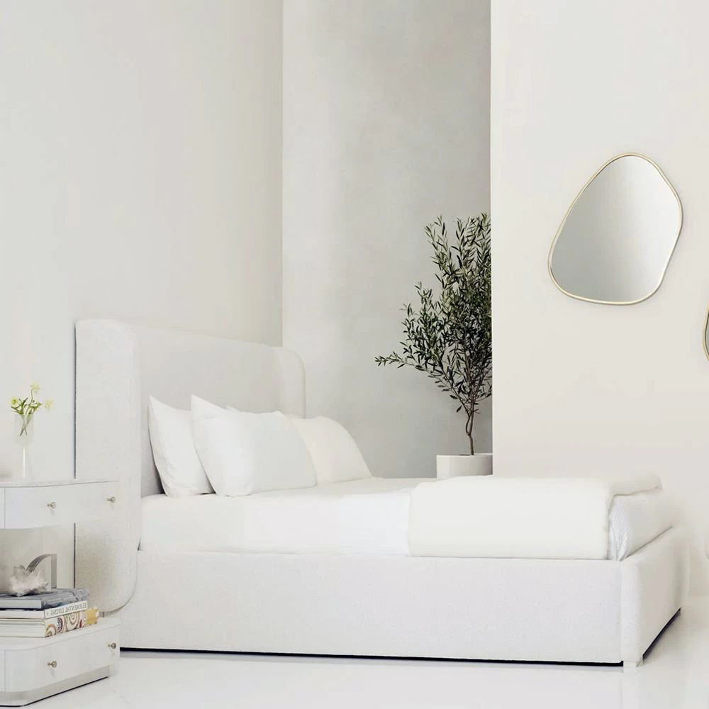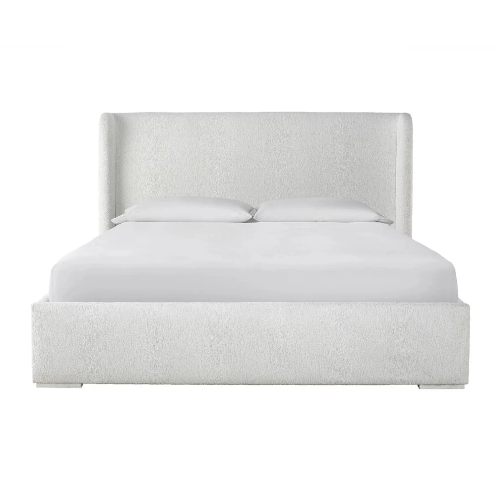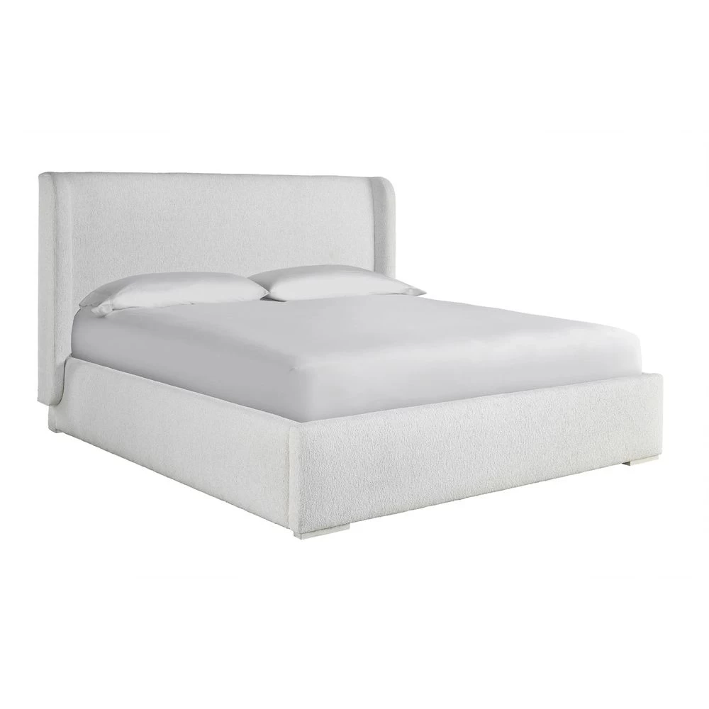 Queen upholstered bed in Cotteny Ivory fabric cover. Also available in King size in standard cover or either sizes in other fabric covers.