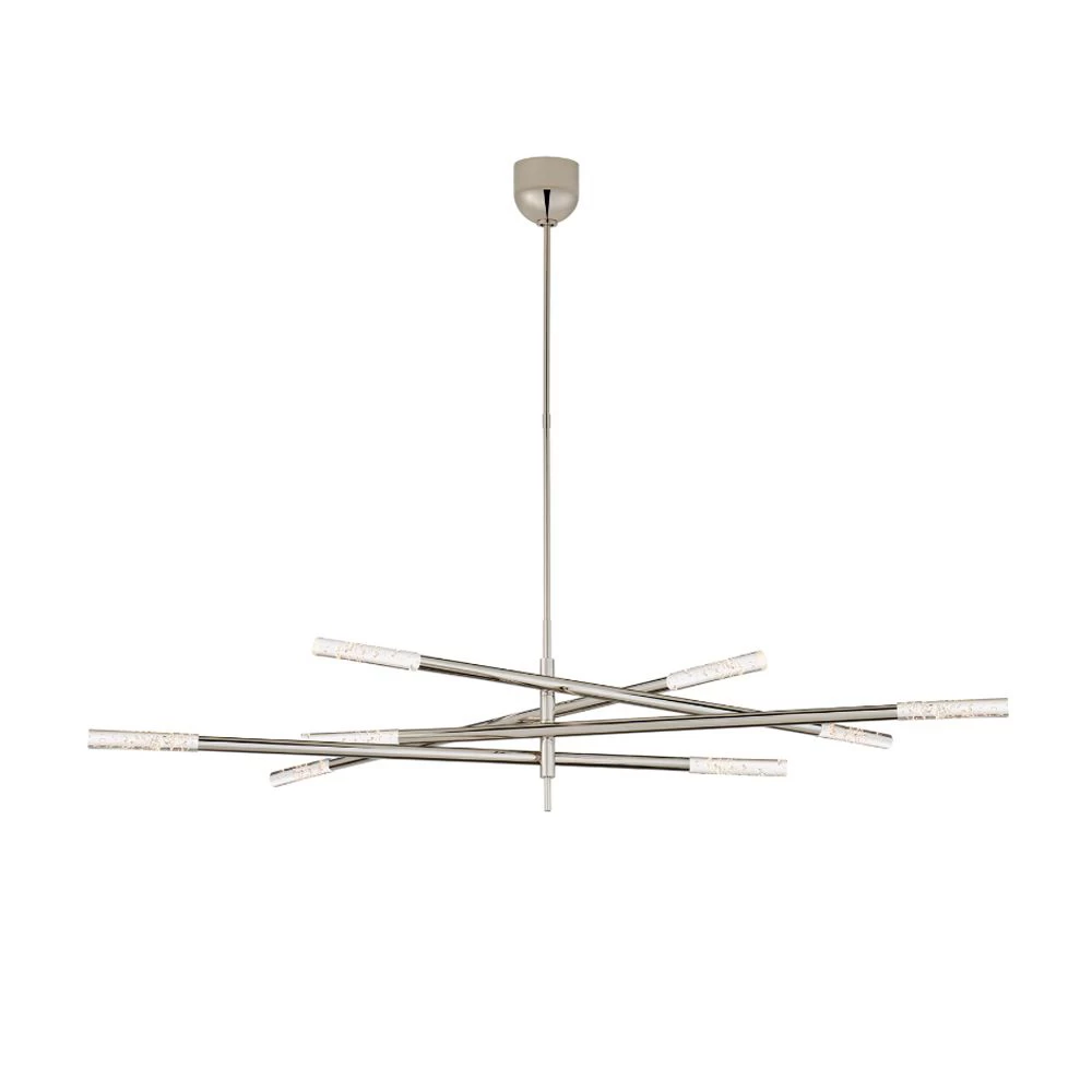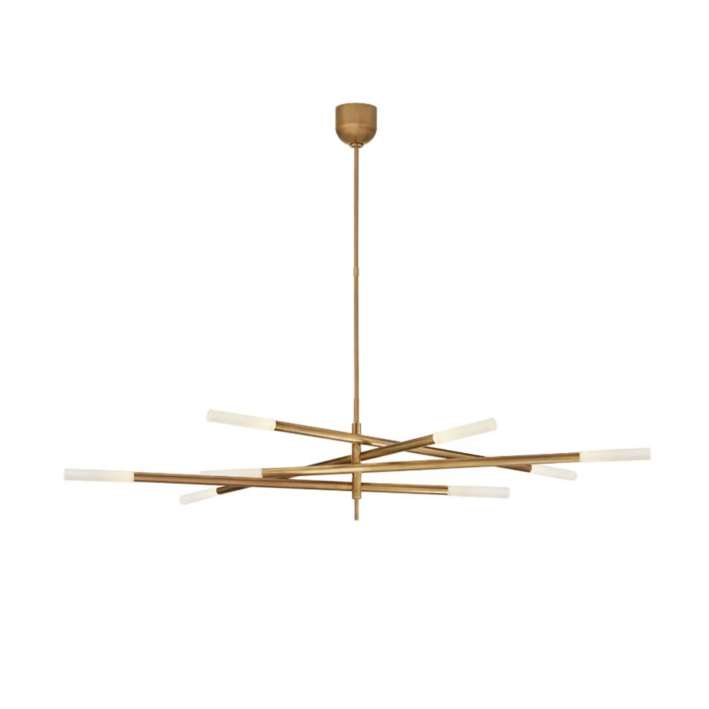 8-light articulating chandelier in Antique Burnished Brass finish with Seaded Glass. Available in other finishes and Seaded or Etched Glass options. Minimum custom height of 19-1/2h.