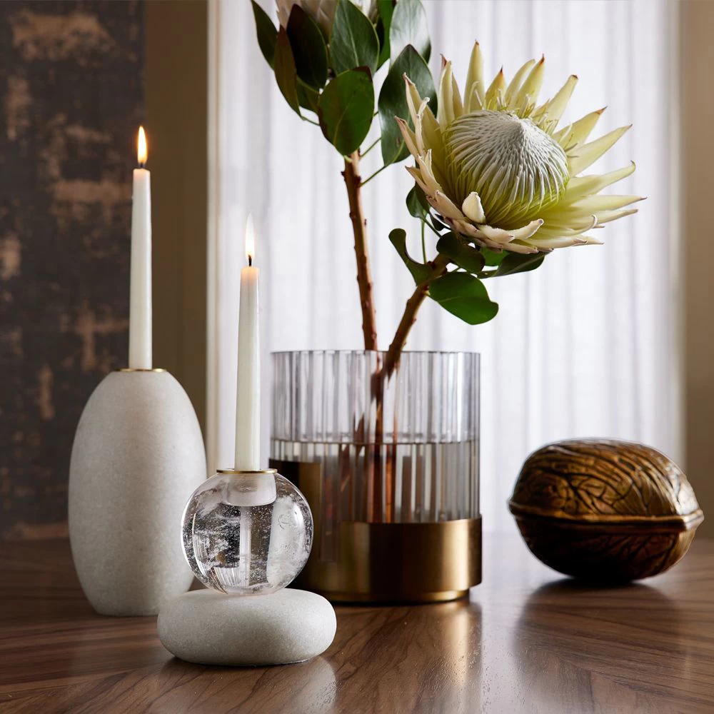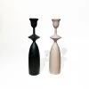 Set of two Ivory Ricestone candleholders with Brass accents.