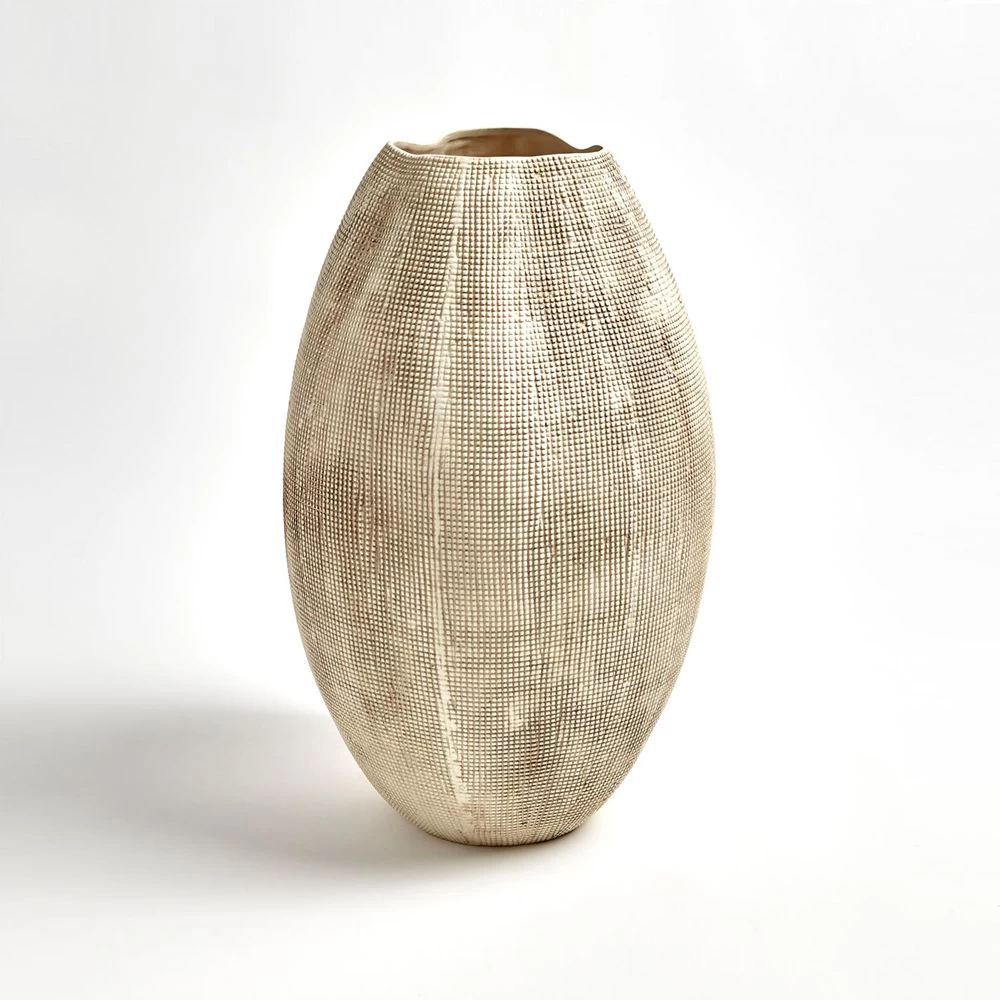 Ceramic vase with etched grid pattern surface. Available in large and small size.