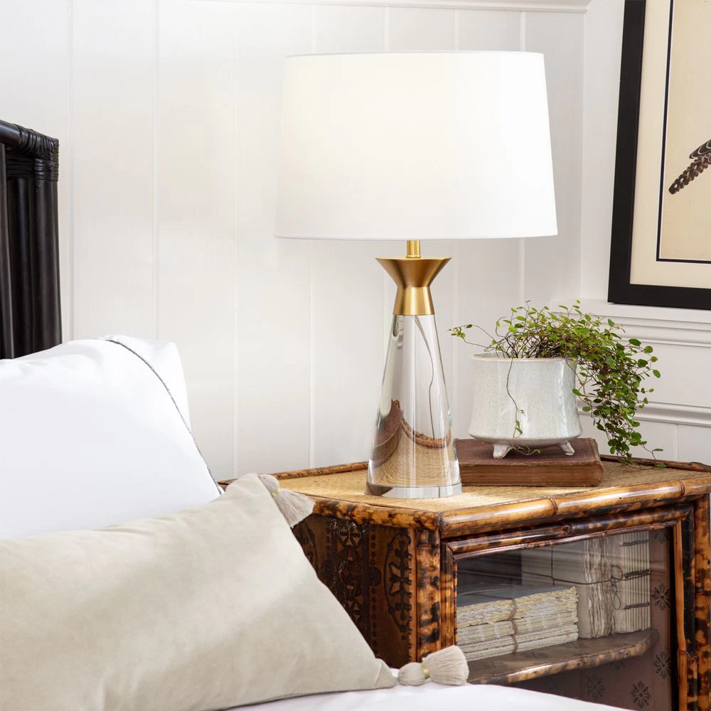 Southern Living collection Crystal table lamp with Gold Leaf accent and White Linen shade.