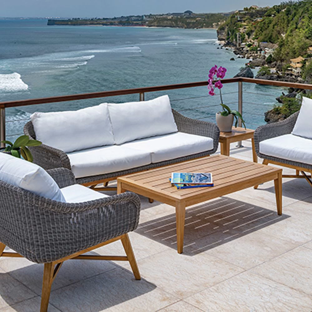Outdoor teak rectangular coffee table.