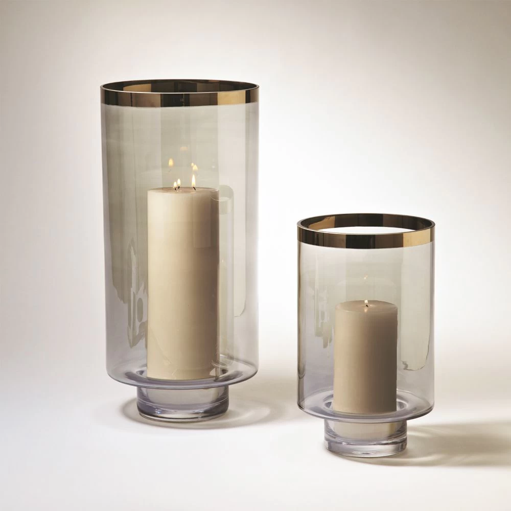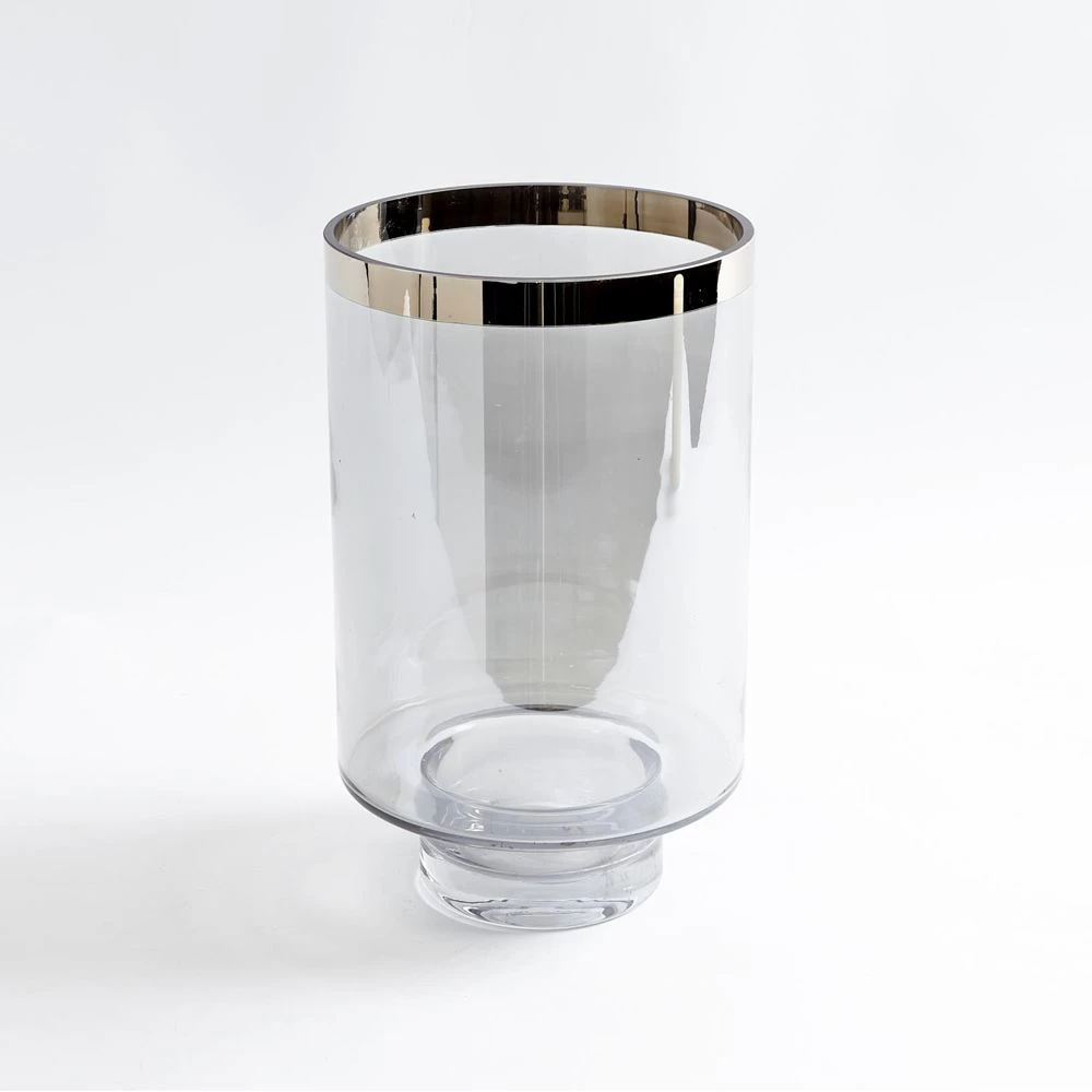 Smoke coloured glass candleholder with Platinum band.