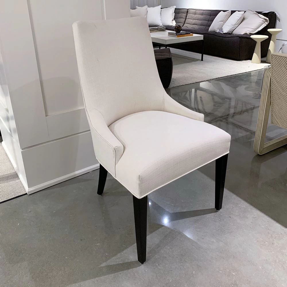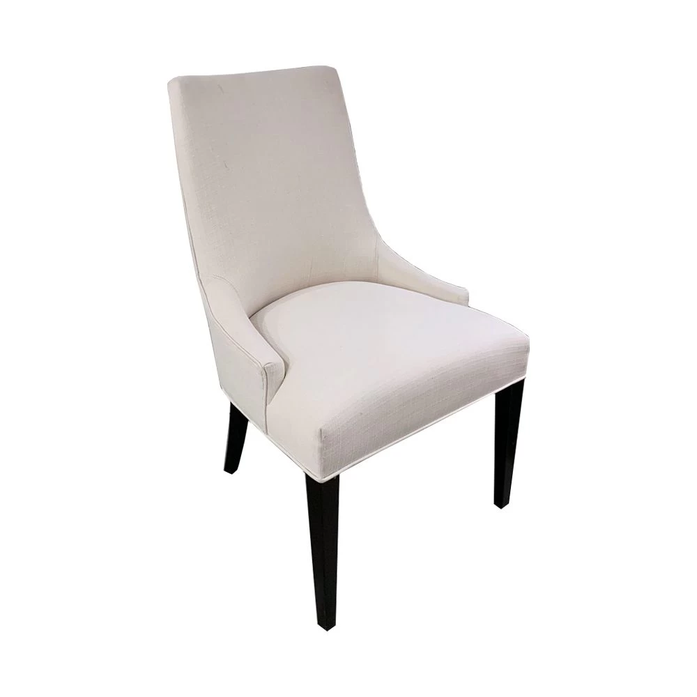 Curved back upholstered dining side chair with Maple wood legs. Priced with 2 yds of entry-level fabric.