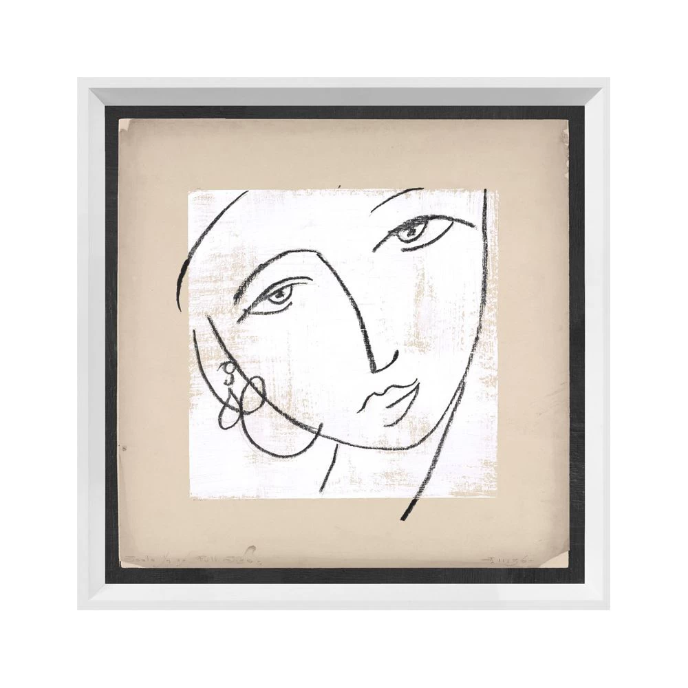A series of eight Matisse inspired feminine sketches on matte paint atop antique paper and framed in a contemporary angled profile, in black or white. Available in two sizes.